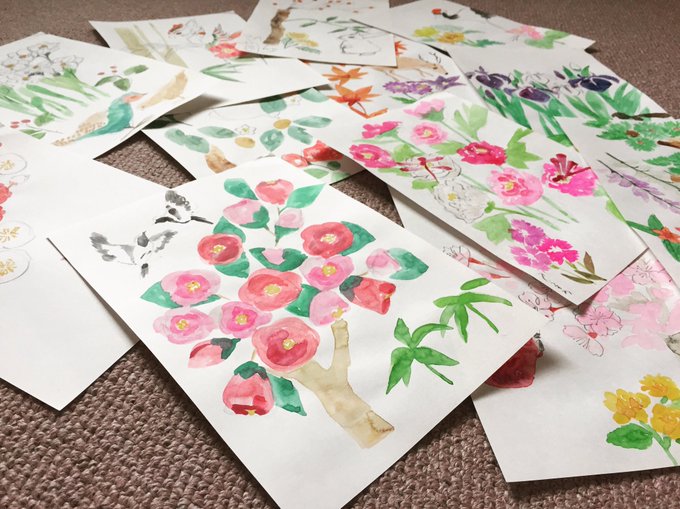 0 11 初夏からスケッチさせてもらい 12枚もの本画を描いた。 ここからより彩られて もうすぐ人の手に渡っていく。 訪れた方々が ここへ来てよかったと感じてもらえますように🌼 ... 夏詣でもお世話になった神社さんの 新たなお手伝い🌼 ... #水彩 #顔彩 #花 #flower #イラスト #picture 20/10/20 18:03