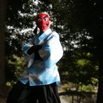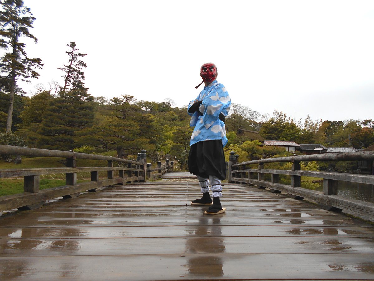 カメラ参加していたエキマニさん @dnUS7epMm7qqm7p から声を掛けて頂き撮影してもらいました うわー!なんかいつもの鱗滝コス写真と違う!! めっちゃ渋くてカッコイイ!! やっぱカメラやってる人って違うよなぁ😆 撮影して頂きありがとうございました👺👍 #コスメル #彦根城 #玄宮園