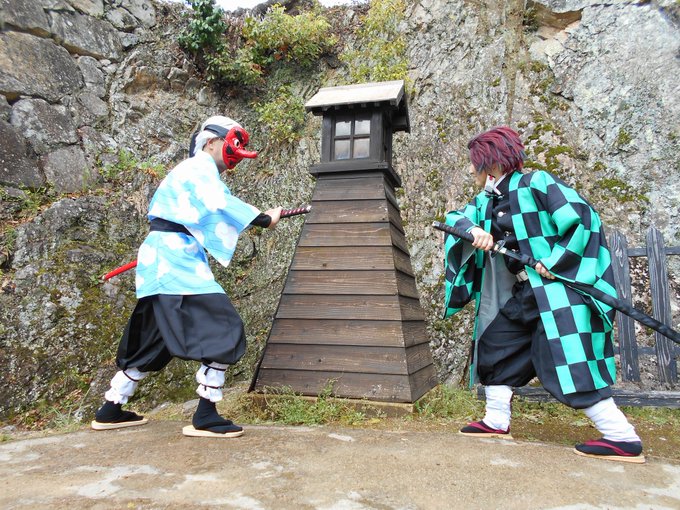 👺「いいか炭治郎…抜刀の基本は、こうだ」 🎴「はい!鱗滝さん、こうですね?」 鱗滝左近次:私 竈門炭治郎:にゃぁさん @nya_hosi 出会ってすぐの併せ撮影をありがとうございました🙇♂️ #コスメル #彦根城