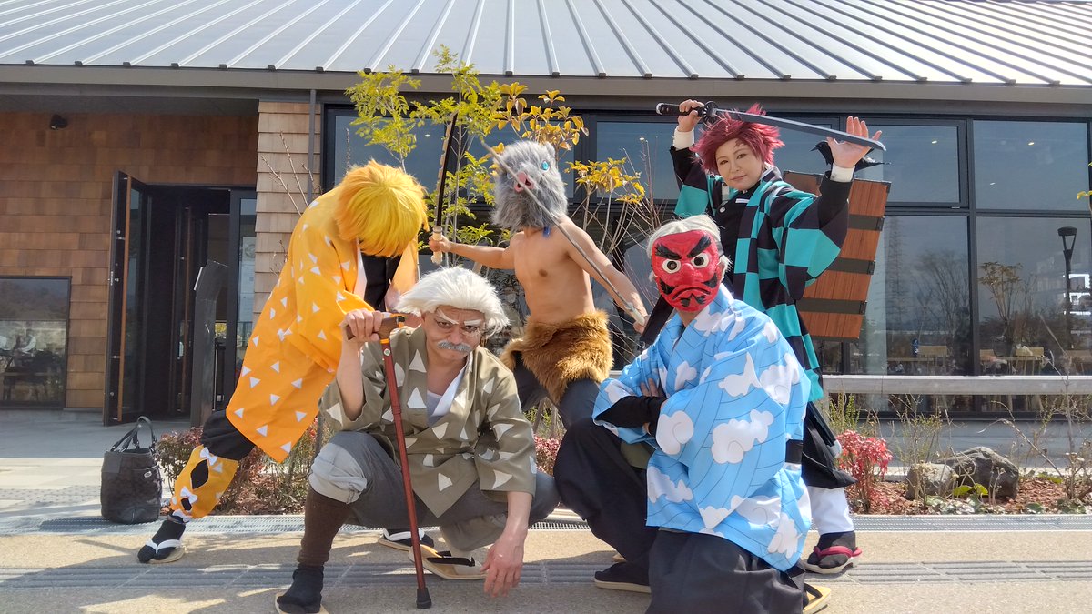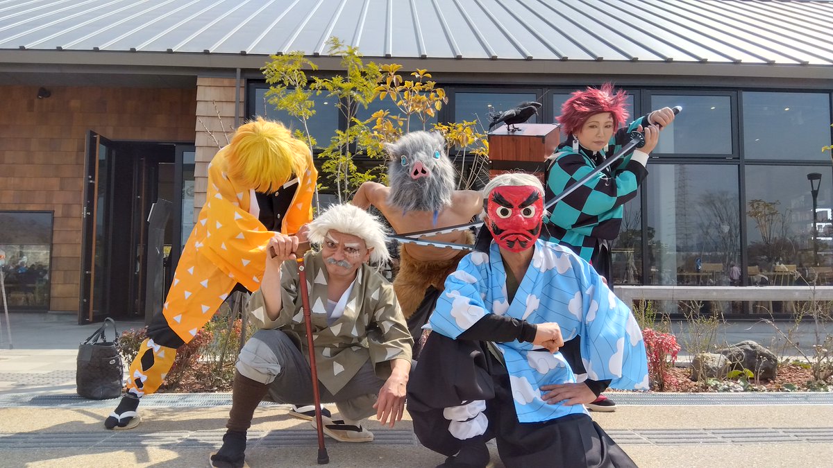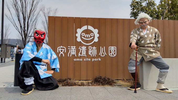 遅くほー! 元柱の桑島と鱗滝の二人が安満遺跡公園に… キター!(゚∀゚ 三 ゚∀゚) #コスメル