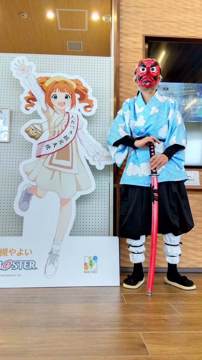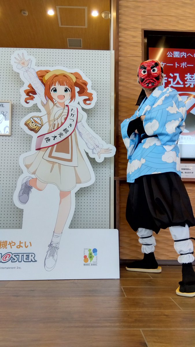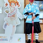 1 20 高槻観光大使に任命された高槻やよいちゃんとのツーショットにご満悦な鱗滝左近次さん(の中の人)です #コスメル #コスメルin安満遺跡公園 22/03/13 14:35