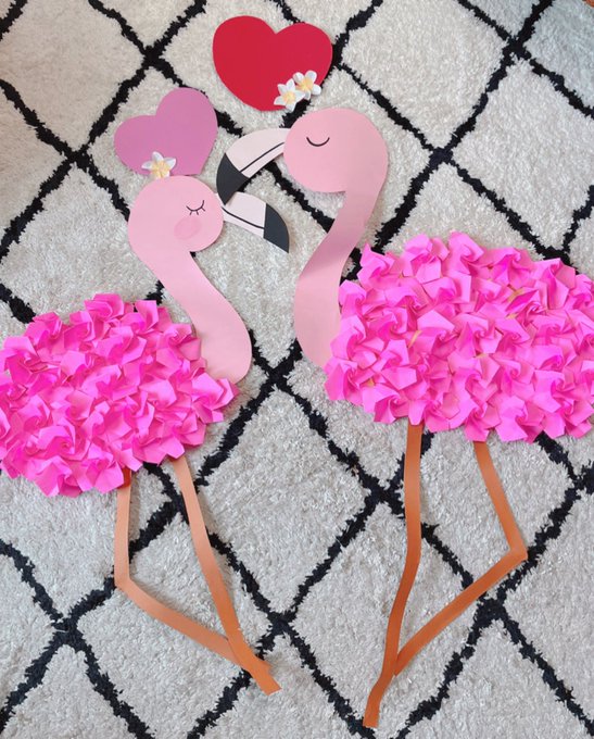 3 48 夏の壁面💕 フラミンゴちゃんも完成~🌺 #ハワイアン #ハワイ #フラミンゴ #夏 #壁面 #ペーパークラフト 21/06/02 10:08