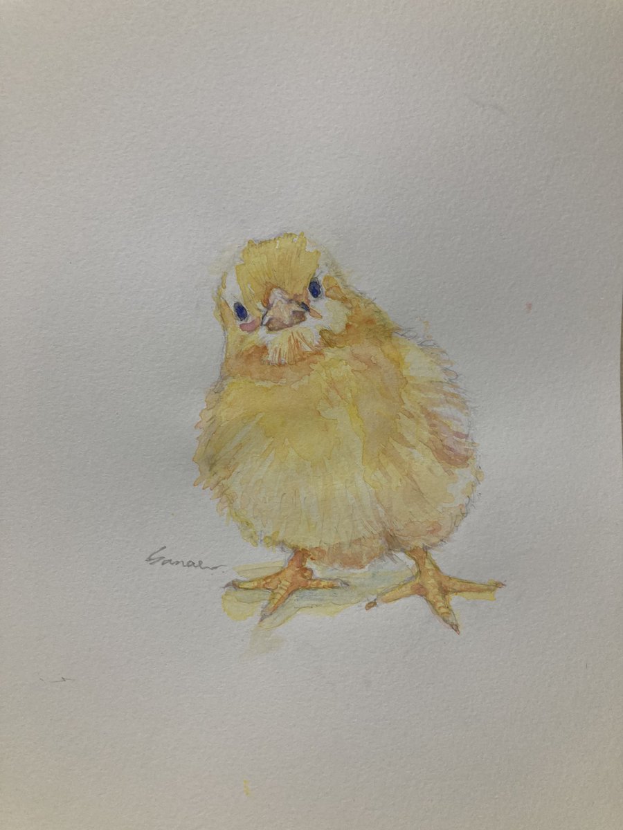 7月22日のカラーはネイブルスイエロー🟡パステルトーンの色なので可愛いヒヨコを描いてみました パステル系のピンクとオレンジ色も少々使用 #WNの夏 #WNの夏筋トレ参加 #ネイブルスイエロー #水彩画