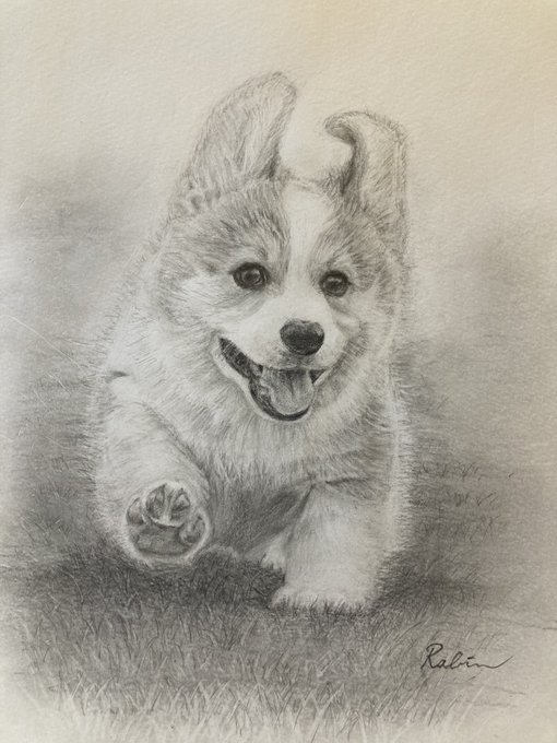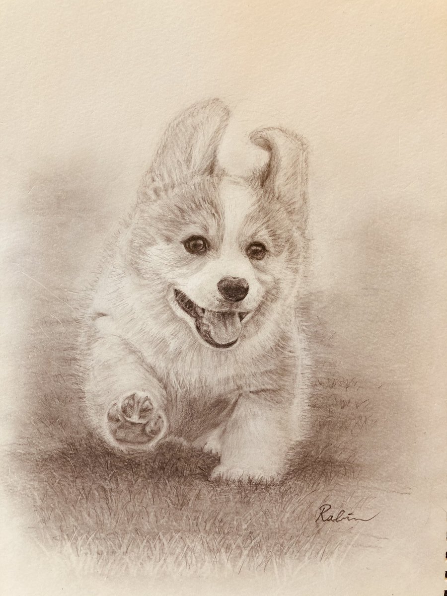 春よ来い はーやく来い♪ 🐶🍀 鉛筆画practice (昨年のカレンダーを描いてみました) #鉛筆画 #ウェルシュコーギー #corgi #corgilove #鉛筆画練習 #コーギー子犬 #corgipuppy