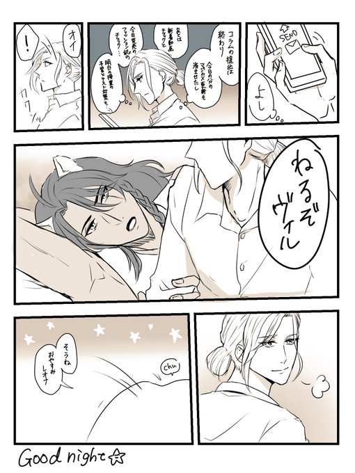 54 291 仲良くスマホで探偵もののドラマ見るレオヴィルちゃん🦁👑 ※でも話してる内容が物騒なヴィ〇ンズカップル #twst_BL 22/03/07 23:40