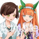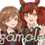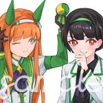 ウマ娘チャンミ優勝のお祝いで、パートナーとの念願の勝利の瞬間をskebご依頼で描かせていただきました🏆 記念なので色紙風デザインにしてみました💝 今までもこれからも続くオグリとの思い出に添えていただけたら嬉しいです🥰 #ウマ娘