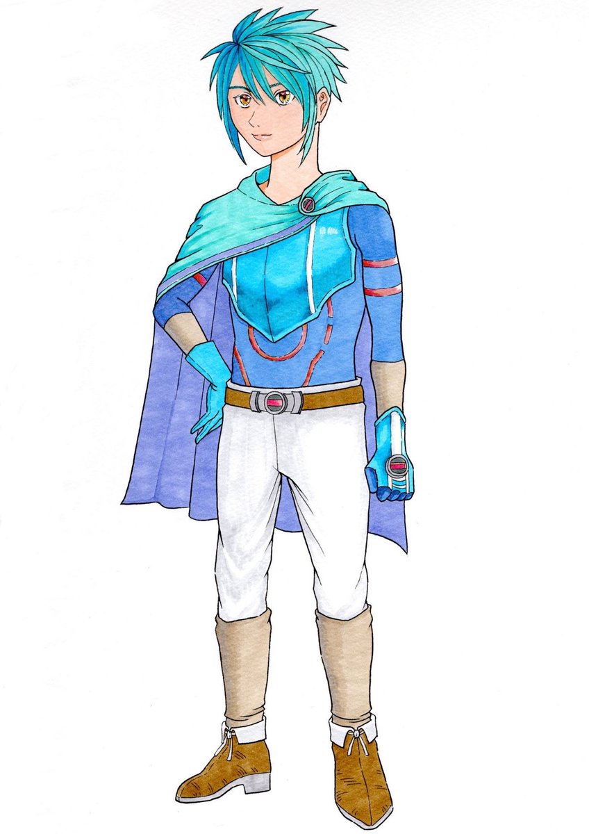 初オリキャラ描きました!!キャラデザ楽しかった〜! 旅するヒーローという設定です! 名前未定なので、募集してます!! #絵描きさんと繋がりたい #オリキャラ