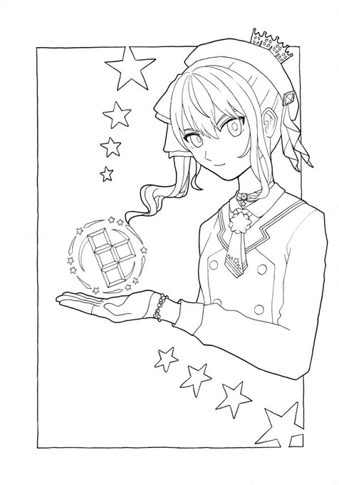 星詠みの友達に誕プレであげる #ほしまちぎゃらりー の線画! 喜んで貰えるだろうか、、?