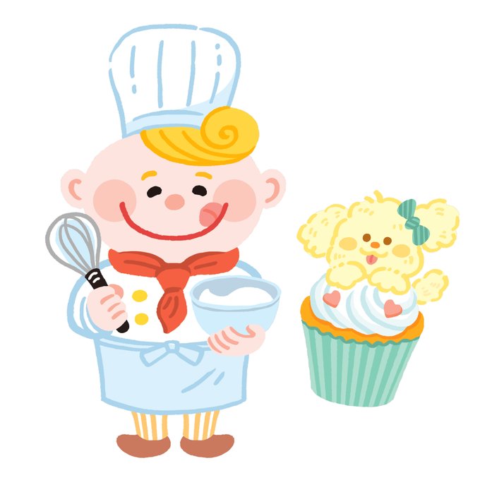パティシエさんとふわふわわんこのキャラクター挿絵を描きました。 |Works|LDK(2021年11月号)・特集ページ内キャラクター mofpof.com/posts/35354986 #イラスト #illustration #キャラクター #character