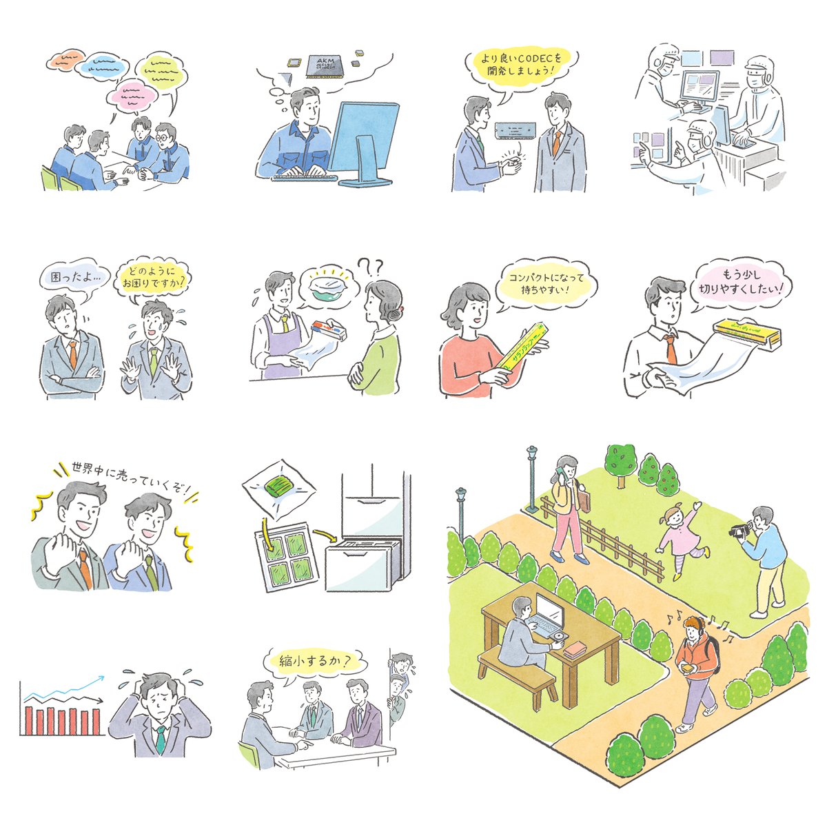 お馴染みの旭化成さま、記念誌で関わることができて嬉しかったです。 |Works|旭化成・創業100年記念誌「旭化成の本」カットイラスト #イラスト #illustration #キャラクター #Character mofpof.com/posts/35401663