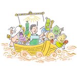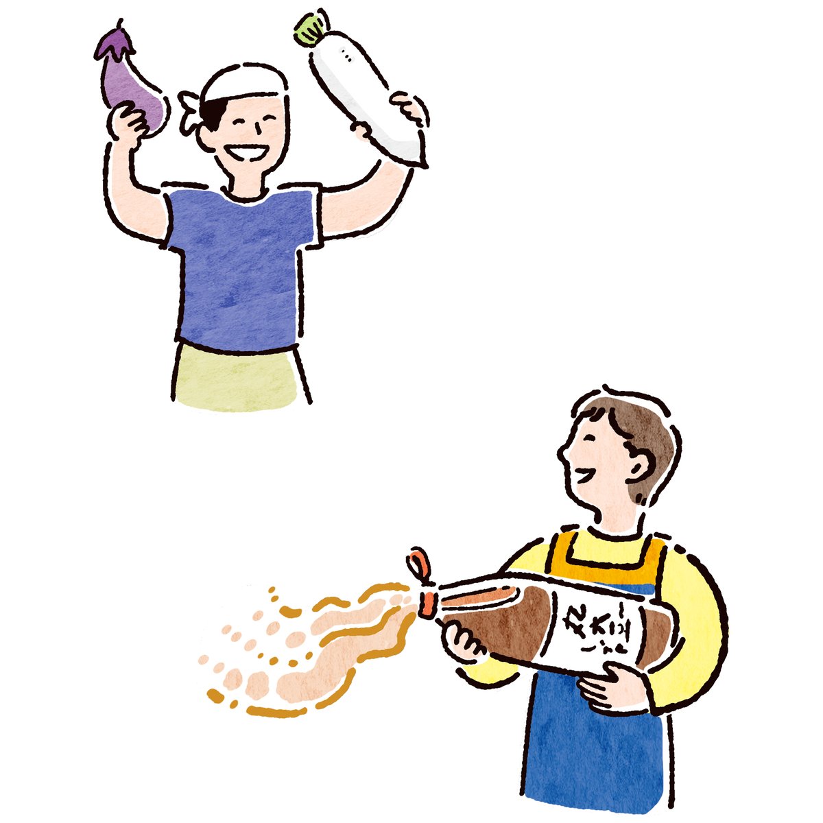 七福神をモチーフにした野菜のゆるいキャラクターたちを描きました。 |Works|パルシステム・コトコト「福神漬け」キャラクターイラスト mofpof.com/posts/34833555 #イラスト #illust #illustration