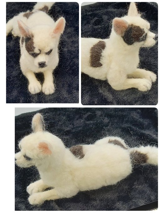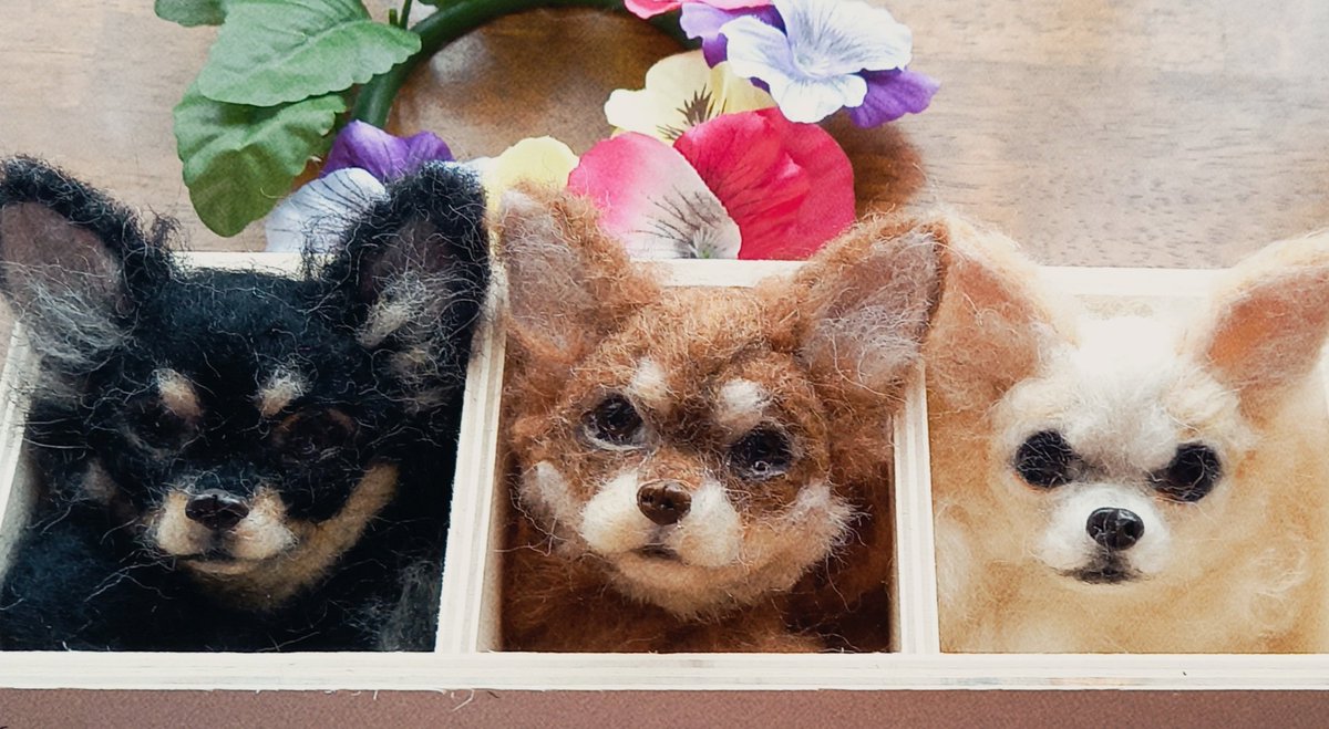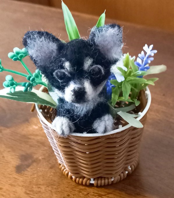 4月の1作目はブラタンチワちゃんを完成させました🌟 これで3チワ揃いました٩(>ω<*)و🐶🐶🐶 リースじゃなくてミニバスケットにしたよ(*´艸`) 後ろにフックもついてるのでラック等にも飾れます♪ #羊毛フェルト #チワワ #犬好きさんと繋がりたい twitter.com/mofu2love02/…