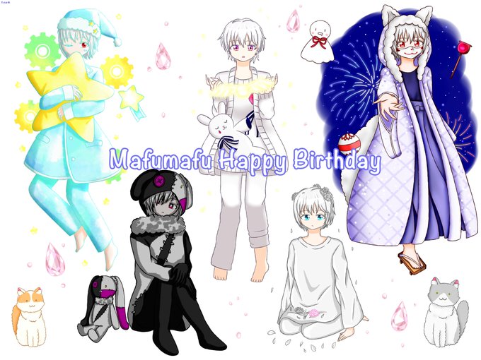 @uni_mafumafu まふまふさん、お誕生日おめでとうございます!まふまふさんの曲の中で特に好きな曲達を描かせていただきました。また歌声を聴ける日々を、貴方が笑っているのを見られる日を心よりお待ちしています。体調や戸締りにも気をつけてお過ごしください…! #まふまふ誕生祭2022 #まふあーと
