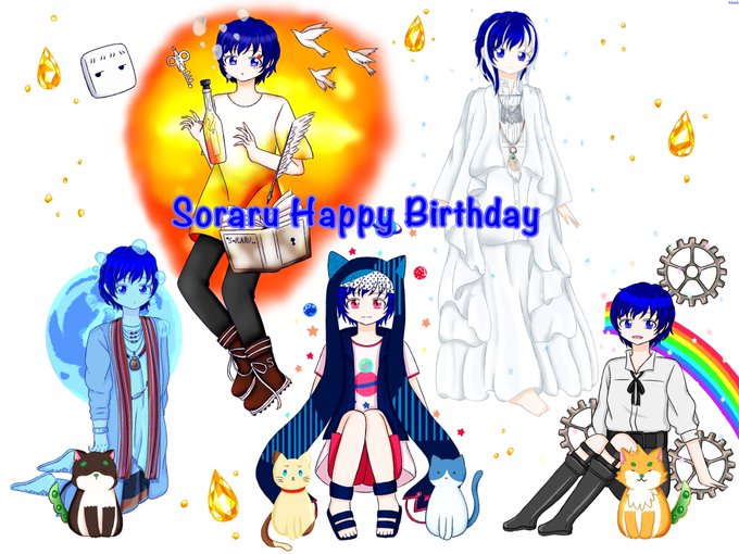 @soraruru そらるさん、お誕生日おめでとうございます!そらるさんの曲の中で特に好きな曲達を描かせていただきました。そらるさんの優しく包み込んでくれるような歌声と、曲の世界観がとても好きです。これからも体調や戸締りにも気をつけてお過ごしください…! #そらる誕生祭2022 #そらるの絵