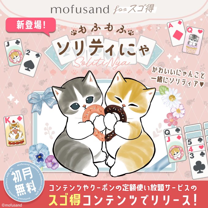 🎉お知らせ🎉 mofusandのにゃんこたちがソリティアのゲームに登場✨ その名も「ソリティにゃ」🐈 スゴ得コンテンツで遊べます🥳 通勤やおやすみ前に、 にゃんこと遊んで癒されてくださいね〜😻 👇登録はこちらから👇 mofusand.m-sgtk.jp/?utm_source=x_… (ドコモ以外も登録可能です♪)