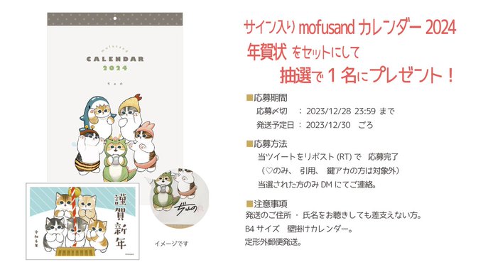 <歳末プレゼント企画> サイン入り2024カレンダーと年賀状をセットにしてプレゼント。 詳しくは画像のご確認を〜。 ※偽アカウントご注意 DMにてクレジット情報をお伺いしたり他のURLへ誘導することはございません。 <宣伝> 年賀状 item.rakuten.co.jp/futabaonlinesh… カレンダー amzn.asia/d/ihgtqY6