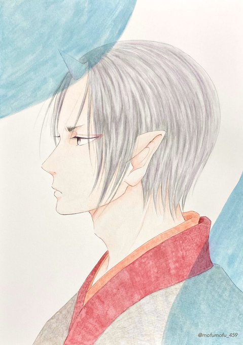 14 27 かがちさんはやっぱり難しいです😂💦💦 理想のかがちさんは、いったいいつになったら描けるようになるのか… 透明水彩絵の具のマヤブルーだけで描いてみました^ ^ 21/06/03 18:28