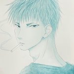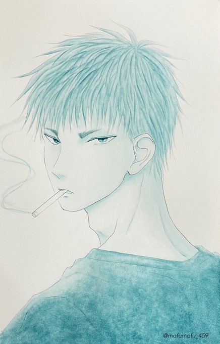 かがちさんはやっぱり難しいです😂💦💦 理想のかがちさんは、いったいいつになったら描けるようになるのか… 透明水彩絵の具のマヤブルーだけで描いてみました^ ^