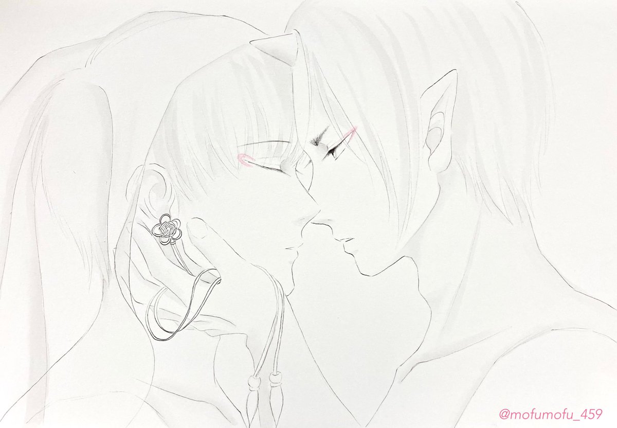 前にフォロワーさんと、シーツを頭にかぶせたはくたくさんに花嫁のベールみたいだと言うかがちさんの話をしていて、鬼白バージョンで描いてみました😌 6月に間に合ってよかった^ ^ 二人だけの結婚式もよきかな♡