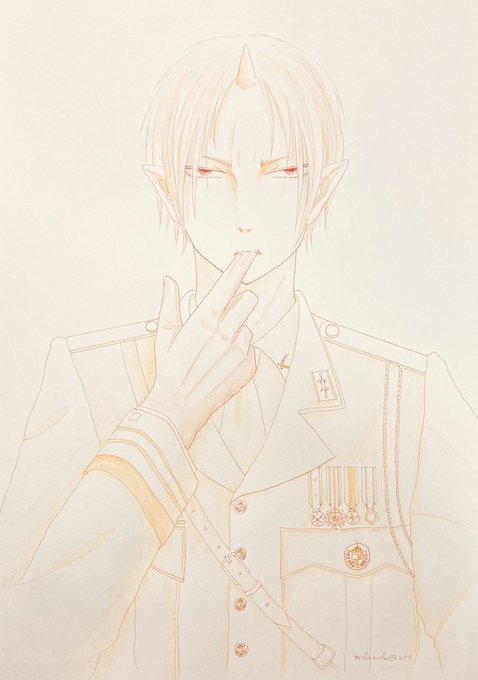 火耀さん(@kayou89)の書かれた「groves」のお話が大好きで、鬼様が手袋を咥えて外すシーンを描かせていただきました😌🍀軍服などの知識が皆無で、おかしな箇所があるかもしれませんが、温かい目で見ていただけたら嬉しいです^ ^