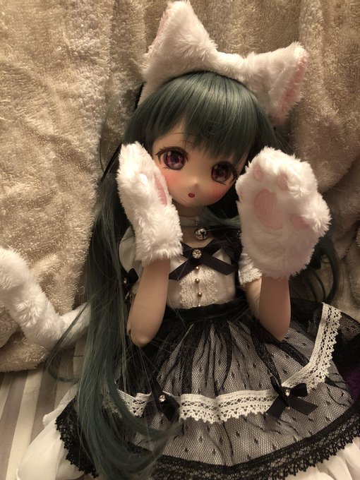 メルカリでお迎えした子₍ᐞ•༝•ᐞ₎◞ ̑̑♪♡ にゃー子☆ 季楽ちゃんとヘッド交換してみたけど、雰囲気変わるのだね(*´`) みゃー子です…よ…よろしく……にゃん…🐈 #MDDはいいぞ #我が家の子可愛い