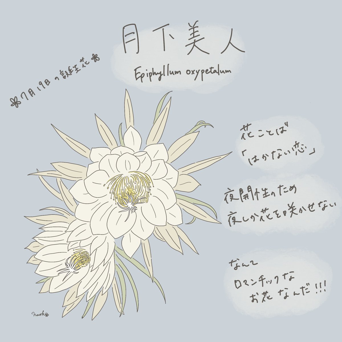 0 8 本日の誕生花は 「月下美人」! ゴージャスなお花なのに 夜しか姿を見せないなんて… とってもロマンチックですね🥰 #誕生花 #イラスト #デジタルイラスト #イラスト好きさんとつながりたい 23/07/19 07:42