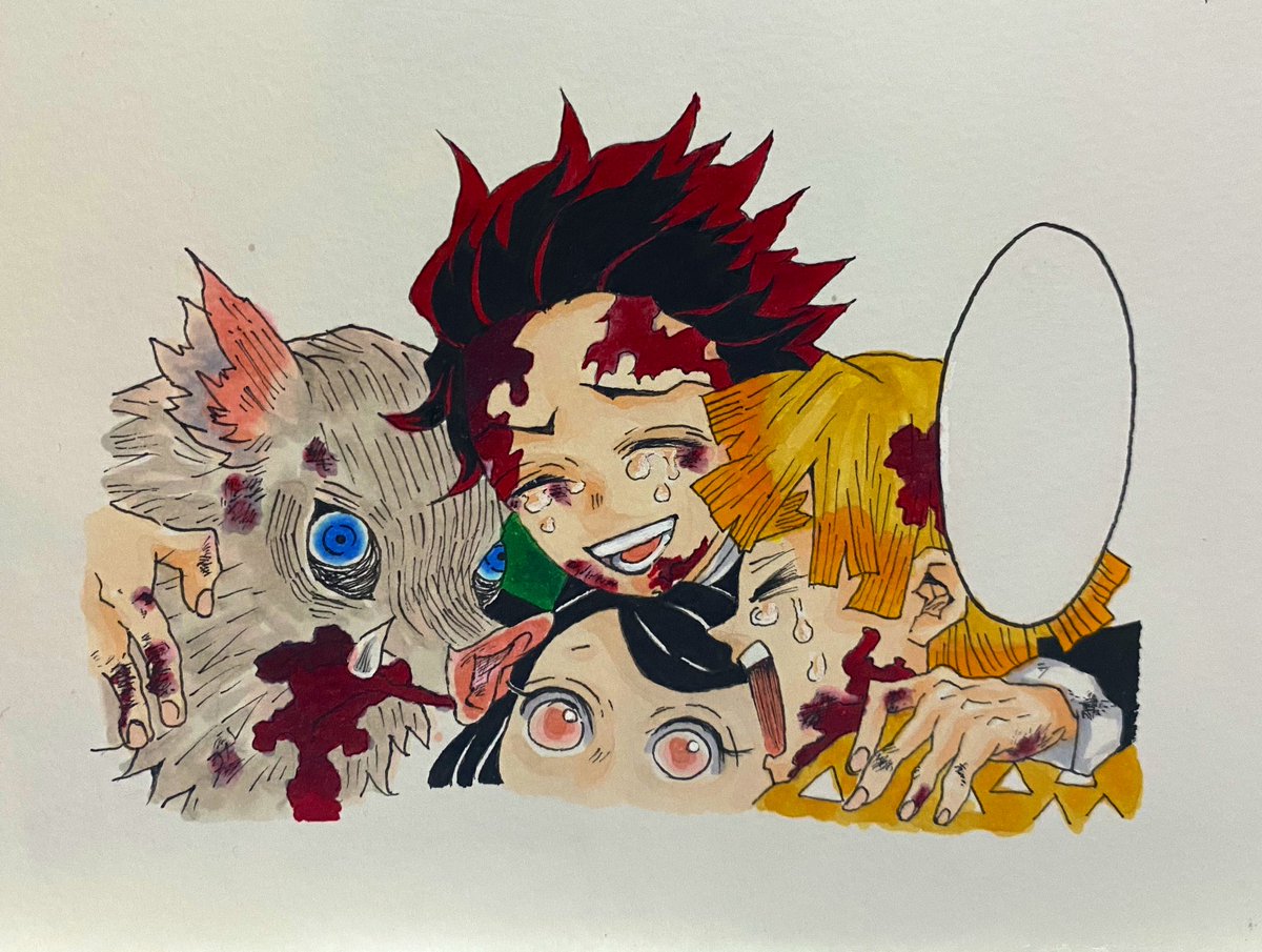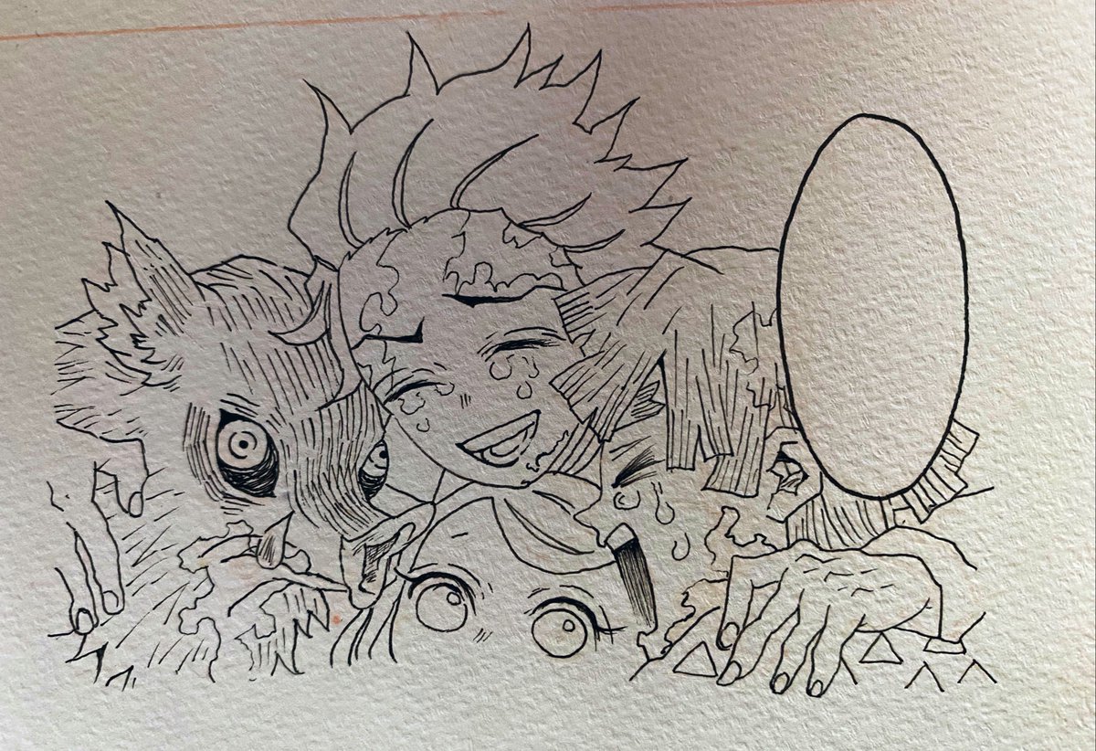 #鬼滅の刃 #模写 スケッチブック1冊目に描いてた 過去絵🙇♀️🙇♀️ 白黒をカラーで描いてたあのシーンが アニメでみることが出来て幸せ! 鬼滅、ありがとううう🎴🐗⚡️🎀
