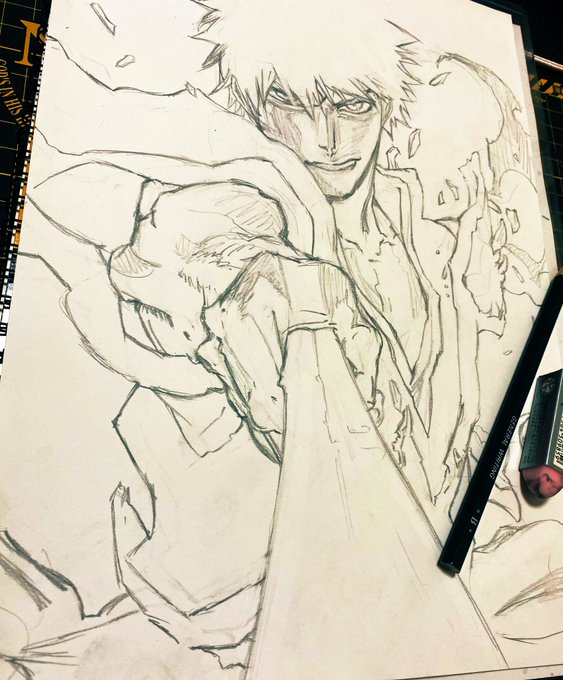 今週初めて鉛筆持ったわ。。。 ちょいと落書きもして感覚慣らしてからペン入れできたらしようかな。