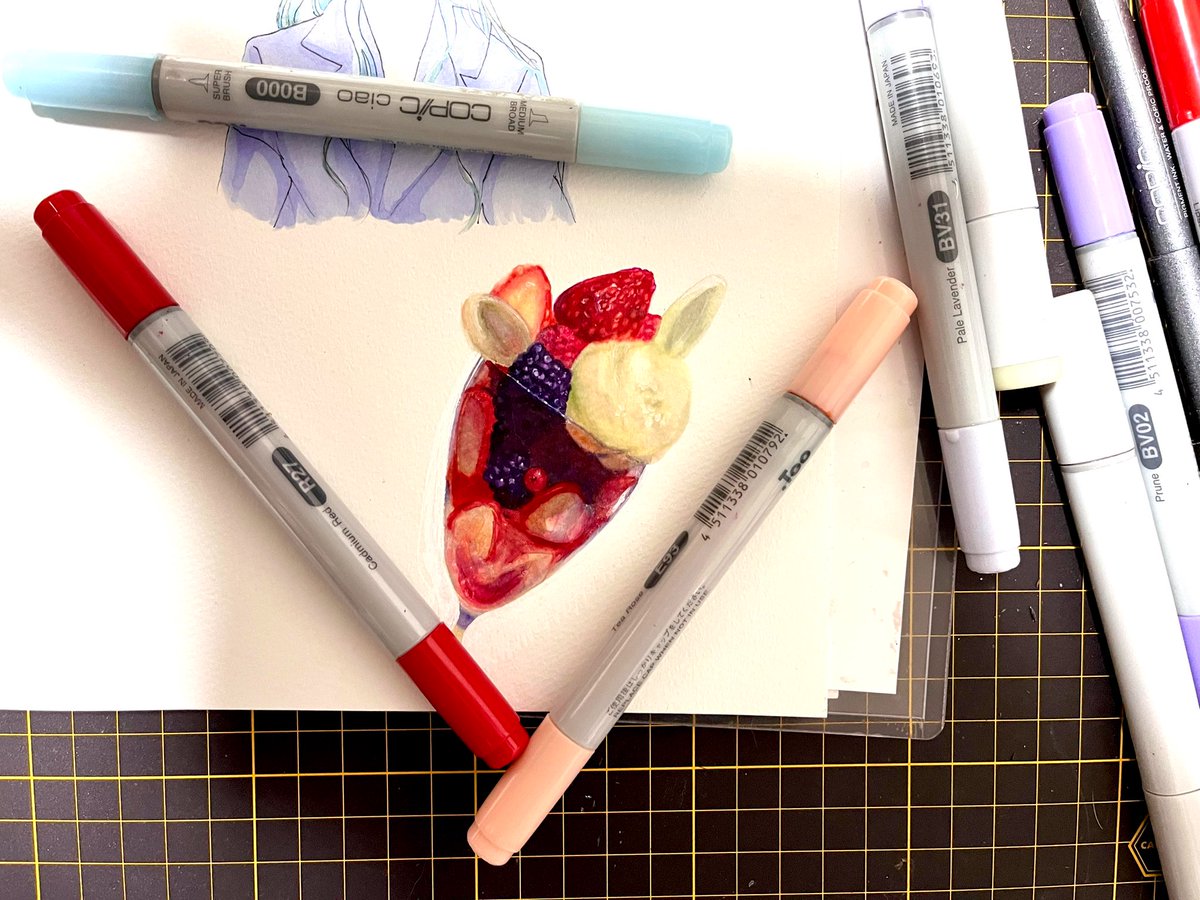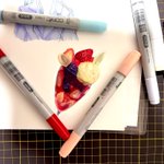 11 135 息抜きに下書き無しでコピックで初めてリアルなの描いてみました。。。 🍓🍨苺のパフェ🍨🍓 22/03/24 18:27