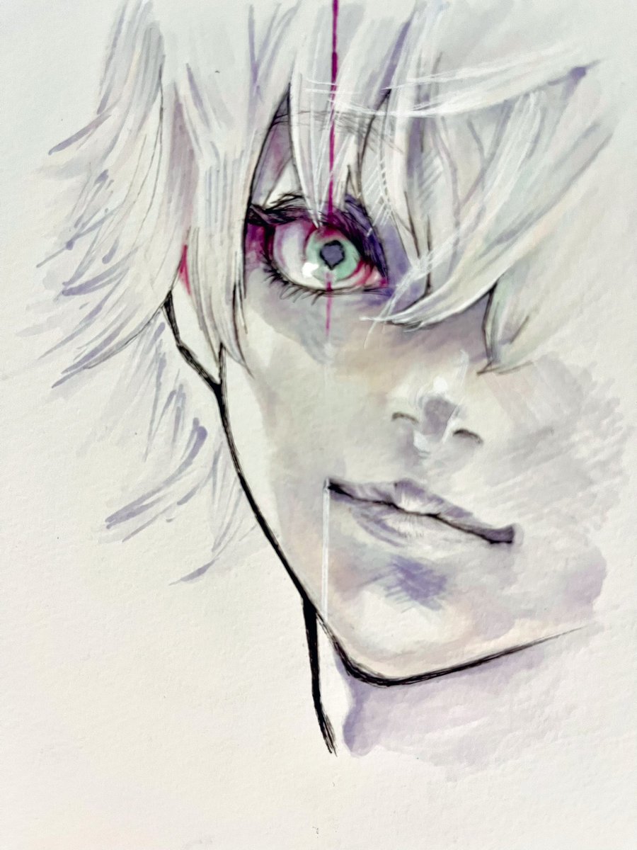 1ヶ月ぶりにペンを握りました。 最近また見返して、やっぱり好きな作品だなぁと思い模写しました𓂃 𓈒𓏸✎ 東京喰種 金木研 #コピック #模写 #東京喰種