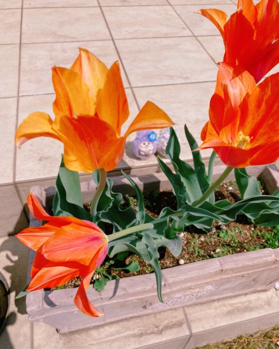 2 44 あー😢 せっかく元気に咲いてたチューリップが雨風にやられて、ぐったり😭 あれ?👀❗️❗️ お花を心配してちょんまげちゃん達も見に来てたのね🌷🦔 また元気になるといいね🌷✨✨✨ #ハンドメイド #ハンドメイド好きな人と繋がりたい #羊毛フェルト #もふもふ #ハリネズミ 22/04/18 21:33