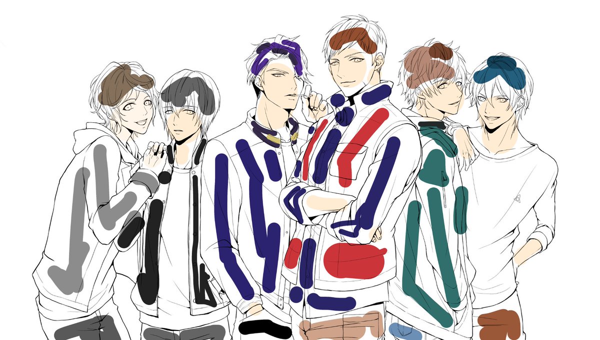 クリスタの自動彩色使ってみた~! めっちゃたのしー!! 色塗るの面倒だな~って放置してた葉星大生6人、もうこれで良いんじゃね?(塗る気なくなったwww)