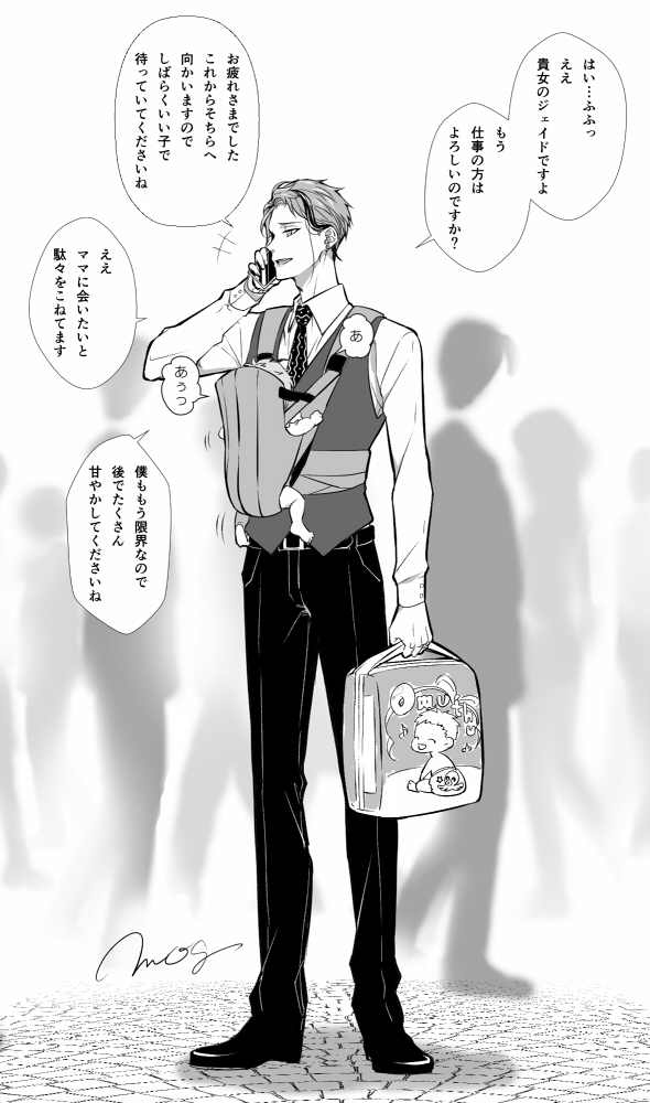 ジェイ監🐬🌸(結婚して子供います) ♀監督生(監不在) #twstプラス 先日の🐬👶アップで描いてみました。 小さくて分かりづらいけど、ピアスは加工してたらいいな…なんて妄想してました。 余った2個は監ちゃんの耳へ😌 あとちゃんと指輪もしてたの…という補足。 twitter.com/mogmog1984/s…