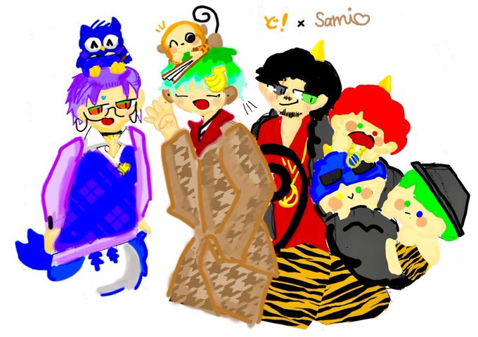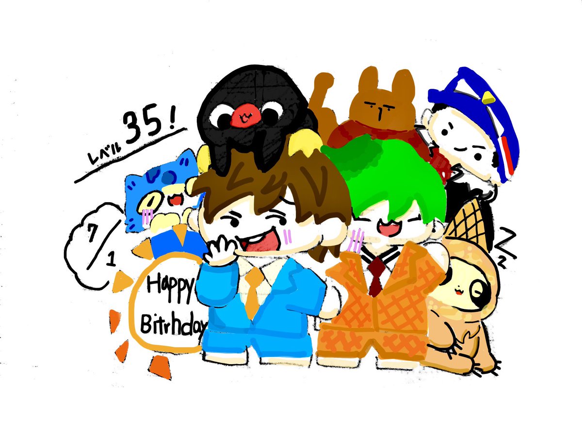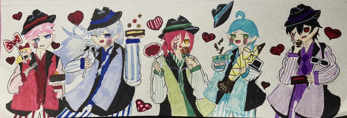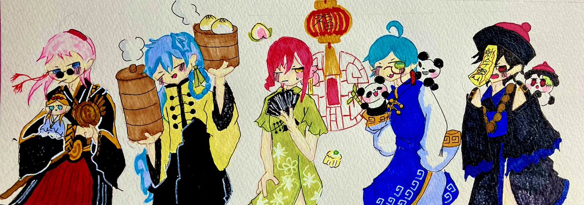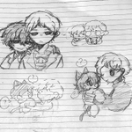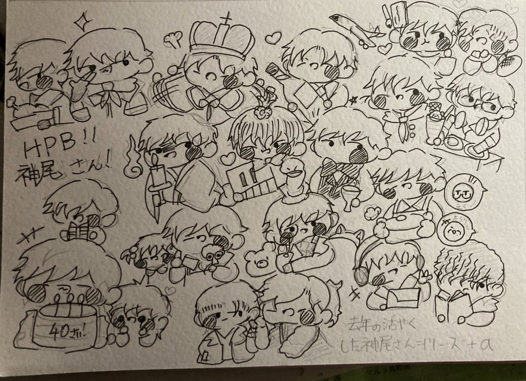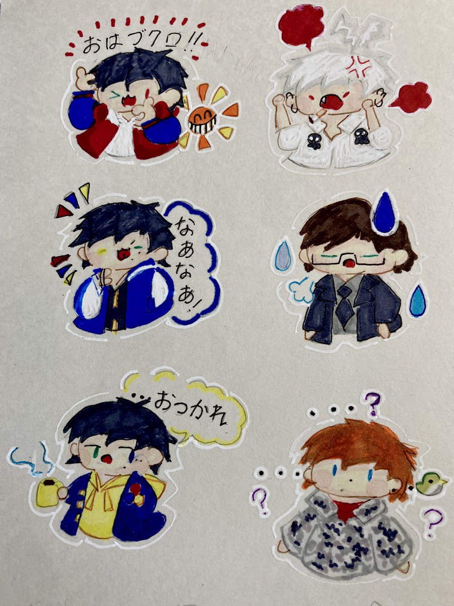 いつも素敵なイラストを拝見しています!😌😌 ネギトロさんの1、2、4のイラストをリメイクしました! アナログで申し訳ないです…🙇♀️🙇♀️🙇♀️ これからもこっそり見させてもらいます…🥰🥰🥰 (横の落書きはおまけでミニキャラで描きました…) twitter.com/Prrr_Prrr_/sta…