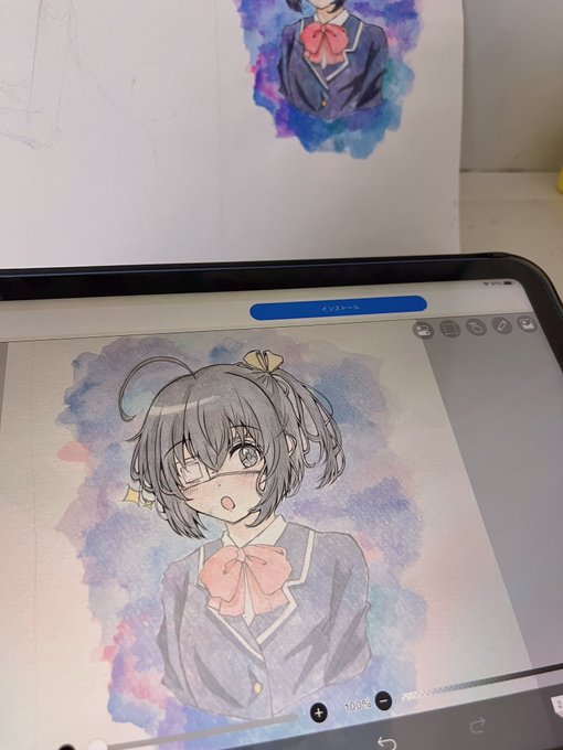 写真じゃ上手く伝わらないけど、''可愛い''と戦ってます…そろそろ寝たい…🙃 初めてミニキャンパスに可愛い空描いてるので出来上がったら見てください…✨ #絵描きさんと繋がりたい #絵柄が好みって人にフォローされたい