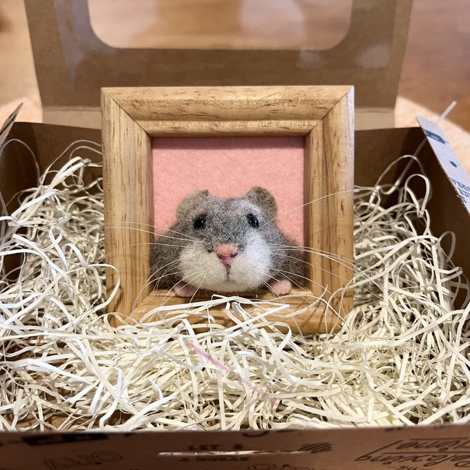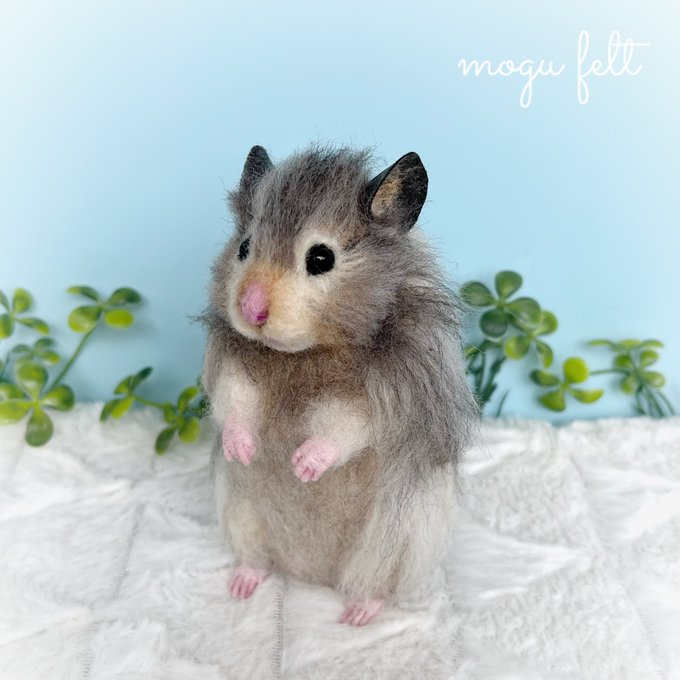 引き続き長い間お迎えをじーっと待ち続けていた『あご乗せハムちゃん(ジャンガリアン)』にも良縁が✨ 愛ハムのジャンガリアンちゃんにそっくりだそうです🥰 この時のためにうちで待っていたんだよね。 ご縁って大切😉 #羊毛フェルト