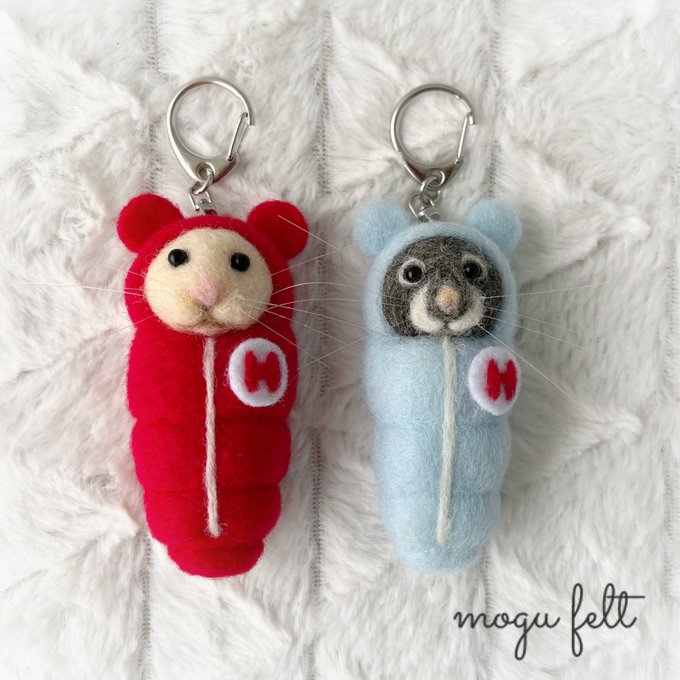 15 131 寝袋ハムスターシリーズで制作していたキンクマちゃん&セーブルちゃんの再販依頼をいただき本日旅立ちです🎁✨ 可愛がってもらえますように(*´ω`人) #羊毛フェルト 22/05/27 10:03