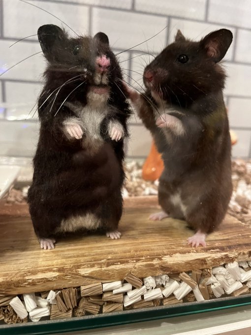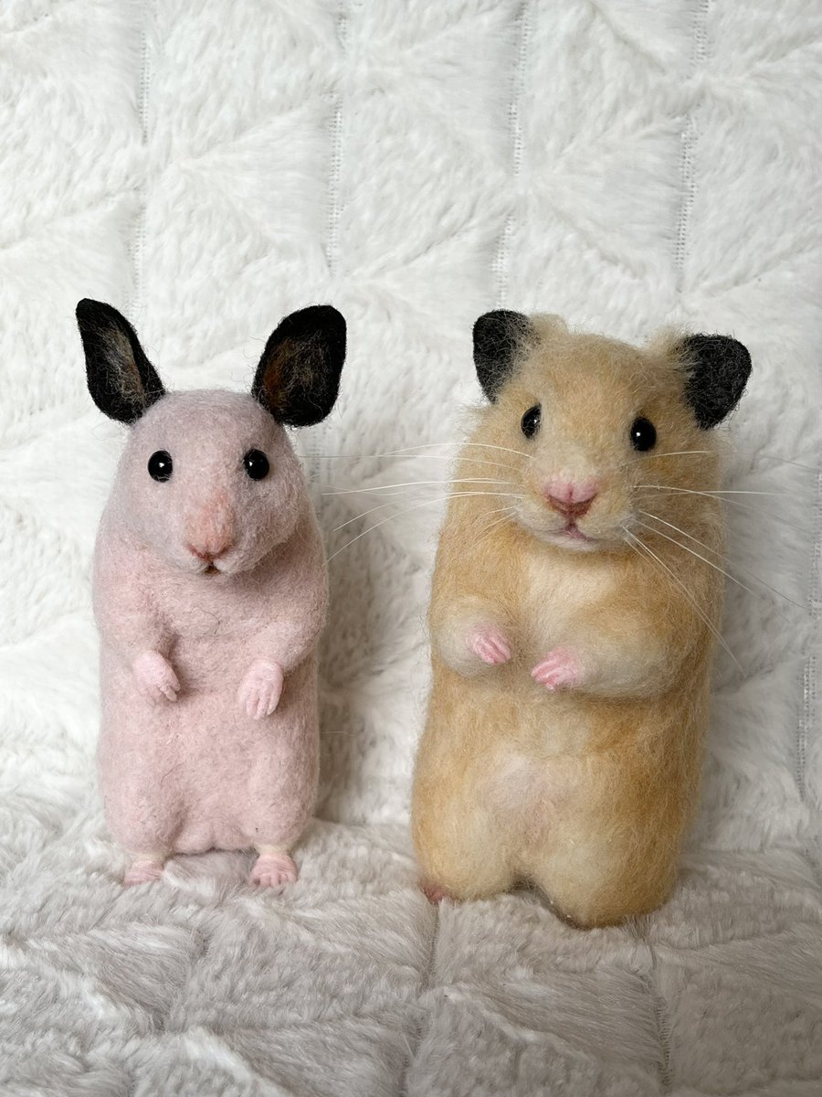 1 27 オーダーいただいていたネルさんが仕上がりました🐹💕 何度か確認し合い主さんの目線でのネルさんに寄せていく時間があったので完成度を上げることが出来ました🤗 早く主さんに逢いたいね✨ またちゃっかりともぐさんツーショット🐹🐹✨ #羊毛フェルト #オーダーメイド 22/09/24 12:36