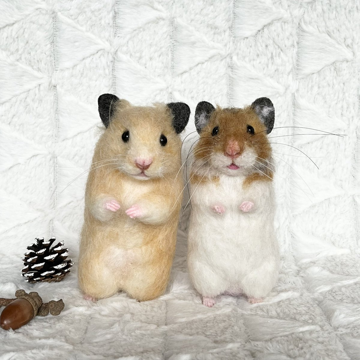 オーダーいただいていたネルさんが仕上がりました🐹💕 何度か確認し合い主さんの目線でのネルさんに寄せていく時間があったので完成度を上げることが出来ました🤗 早く主さんに逢いたいね✨ またちゃっかりともぐさんツーショット🐹🐹✨ #羊毛フェルト #オーダーメイド