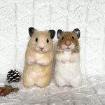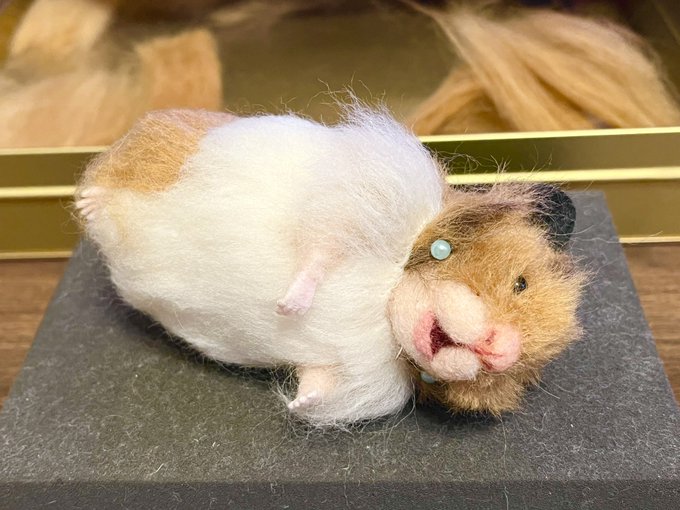 8 117 ハムスターを作る度に難しいと思う所はポーズによってその形態が同じ子⁉️とびっくりするくらいかわるところよ。 伸びをしているのと首が埋まってるのとか… とくにドワーフ系はもう骨格がどうなってるの?と思うぐらい蕩けたおもち(っ ॑꒳ ॑c) だがそこが良き(´>///<`)💕 #羊毛フェルト 22/10/02 15:12