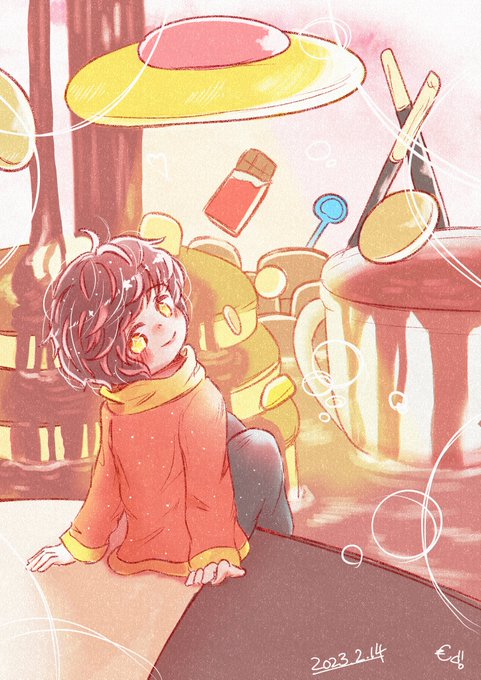 3 21 【チョコレート襲来】 「……君もこっち来て一緒に見ようよ」 #バレンタインイラスト #ハッピーバレンタイン 23/02/14 21:16