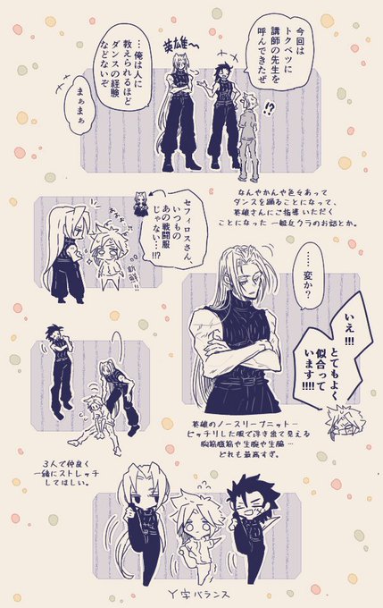 59 300 セフィクラ+ザック 神羅で一般兵のクラに迫りくるダンスの実技(100%捏造)のために助っ人の英雄を召喚してあげるザック。 23/04/29 11:36