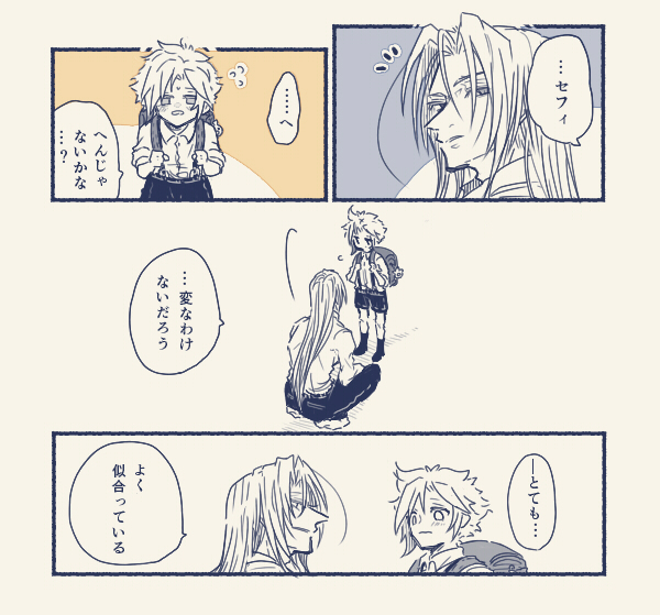 52 267 SC現代パラレル 両親を早くに亡くしたクラの親代わりとなっているセフィと、今日から入園式な子クラの平和な世界。 23/05/16 20:42
