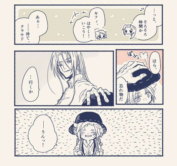 年齢操作SC まだ小さいセフィが戦地へ行き負傷して帰ってくるたびにとても辛そうな表情をする大人クラと、なぜクラがそんな顔をするのか不思議でしかたない若セフィ