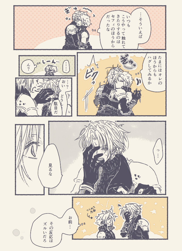 年齢逆転セフィクラ 自分からは積極的に触れてくるのに、いざクラのほうからアクションを起こすと照れてしまう初々しい若セフィも好き。