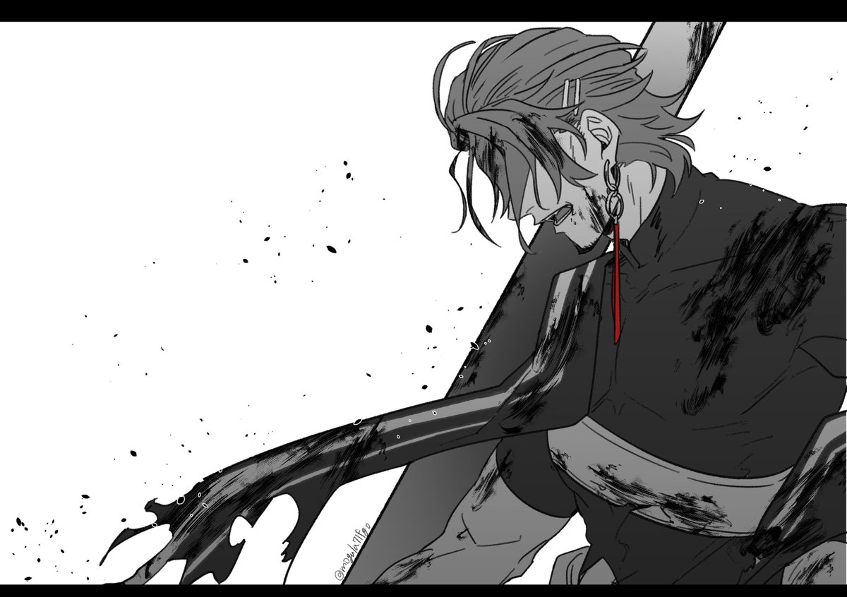 254 1386 『バーサーカー』 己が性癖に従い、乱れ髪とかっこいいヨダナも描きたかった。2枚目は背景白が好みの雰囲気だったので差分供養です。 23/07/08 01:35