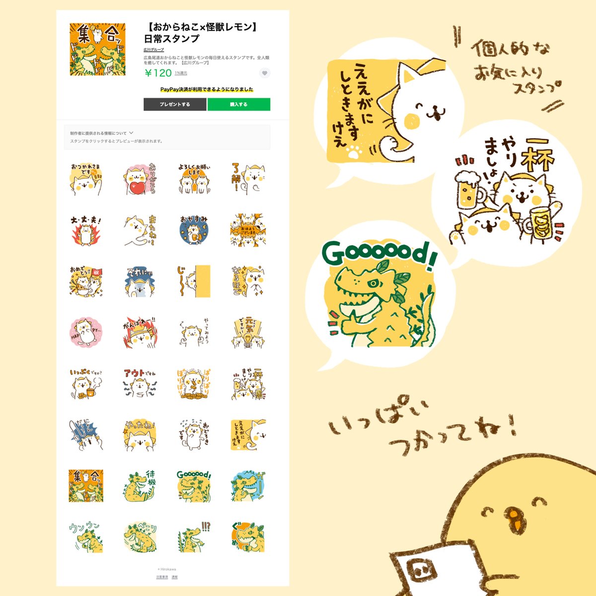 【イラストのお仕事のお知らせ】 【おからねこ×怪獣レモン】日常スタンプが発売になりました!日常でもお仕事でも使いやすいラインナップです🐱🍋 URLはこちら🔽 store.line.me/stickershop/pr…