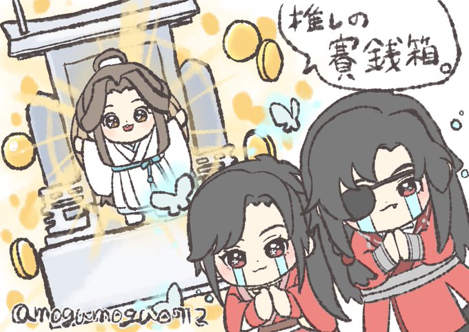 さらっと描いたやつ多かったが 天官賜福にはまれて今年も楽しかった😂 特に推しの賽銭箱落書きが何気に好き 来年の目標は漫画を描くと脱原色使えない病かな #今年も残りわずかなのでお気に入りの4枚を貼る