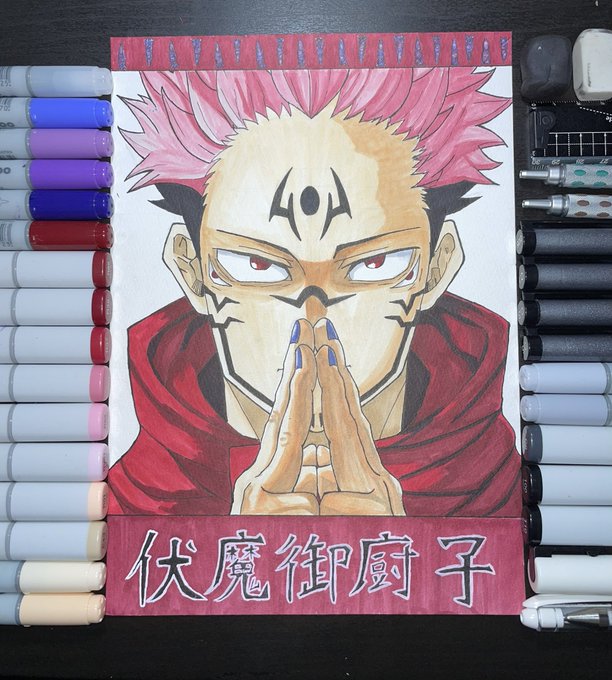 1 9 おはよーございます⛅️ 呪術廻戦の両面宿儺完成しました✍🏻 とても難しかったです😭 領域展開 伏魔御𢊍子🙏🏻 #呪術廻戦 #呪術廻戦絵描きさんと繋がりたい #呪術廻戦イラスト #宿儺 #両面宿儺 #領域展開 #伏魔御𢊍子 #コピック #コピック初心者 20/12/24 07:27