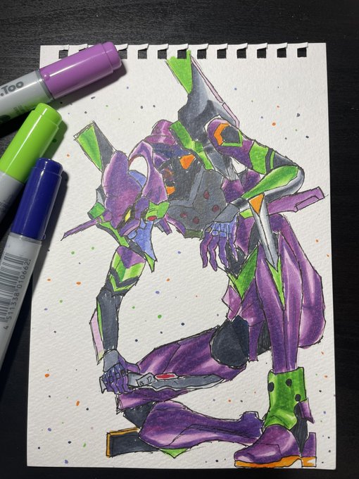 テキトーにかいた初号機👑 適当すぎて笑った😇 #エヴァンゲリオン #エヴァンゲリオンイラスト #エヴァ #落書き #コピック #初号機